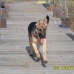 Bella at 6 months. Getting really big. She’s running to jump off the dock to go get her Frisbee. She is a fantastic swimmer.