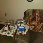 Lucy in her play pen at three months old. Her color is beginning to change to silver and brown. She weighs 3.2 pounds. Extremely intelligent.