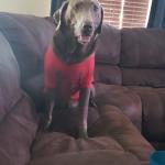 Odin loves to wear shirts. He is patiently awaiting the arrival of his emotional support dog vest so that he can accompany me everywhere.