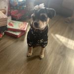 This is Chanel on Christmas , one of her Christmas photos she doesn’t like to put on clothes at all but ,isn’t she adorable?