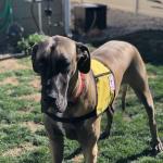 Dusty Rose is also a Pet Partner Therapy Dog January 2021 at 16 months Great Dane. / Female spayed / fawn black mask white blaze on chest