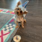 Beau is very smart and very cute!! He loved wearing his Birthday Hat!! He wasn’t too sure about the cupcake and whether he could eat it or not. But, he had a few bites once I broke off some small pieces!