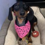 This is darla when she is at work with me. She’s black and brown. Very sweet and loving and very small. Loves her squeaky toys