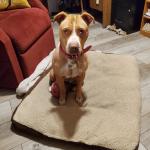 Im chilling in my New bed im happy,love my human mom and she love me and care me.Im play in the yard with her.