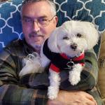 This is Kiwi and his daddy. His daddy loves him so much. When his daddy starts having a panic attack, Kiwi knows and jumps in his daddy’s lap and starts giving me puppy kisses.