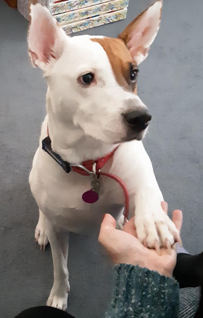 Kloey loves her treats and does all kinds of tricks like sit, lay down, speak, high five, but her favorite by far is shaking a paw.