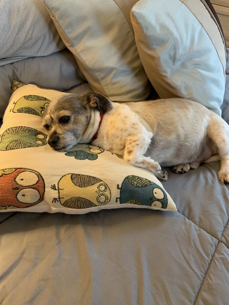 My constant companion. He was rescued 5+ years ago. He’s very loving and playful but gets upset around other animals as he was never socialized. He does very well with me.