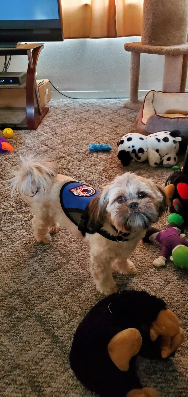 Playing in living room a year ago passed CGC test on Dec 20 2021, now on to Public Access and Urban Canine, last step 3 items for my balance and PTSD