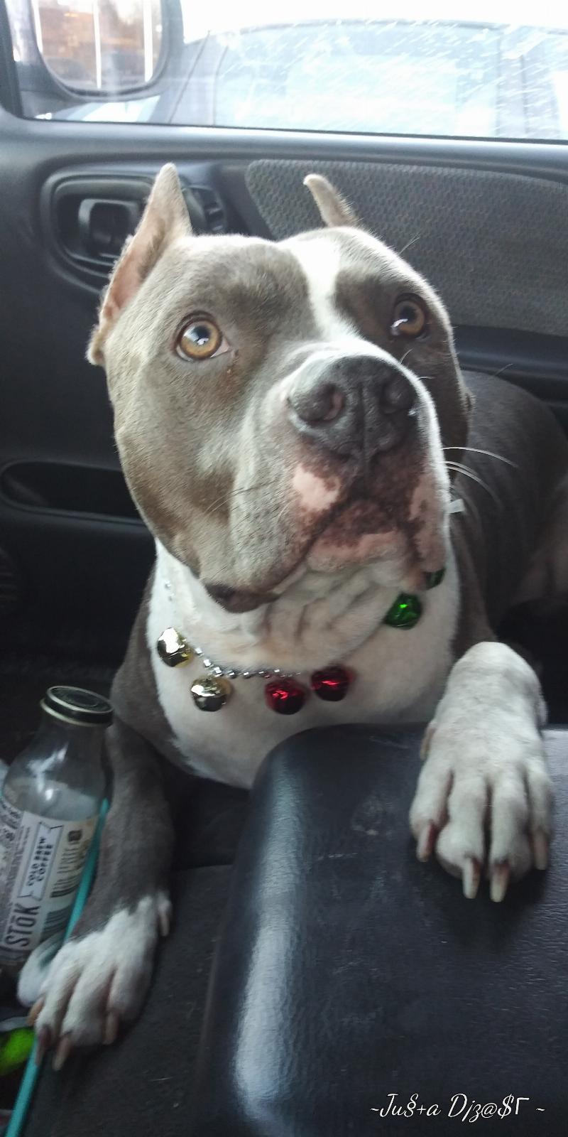 My best friend. My only friend. Helps with my anxiety depression and asthma. We don’t watch football but this bandanna was given to her.
