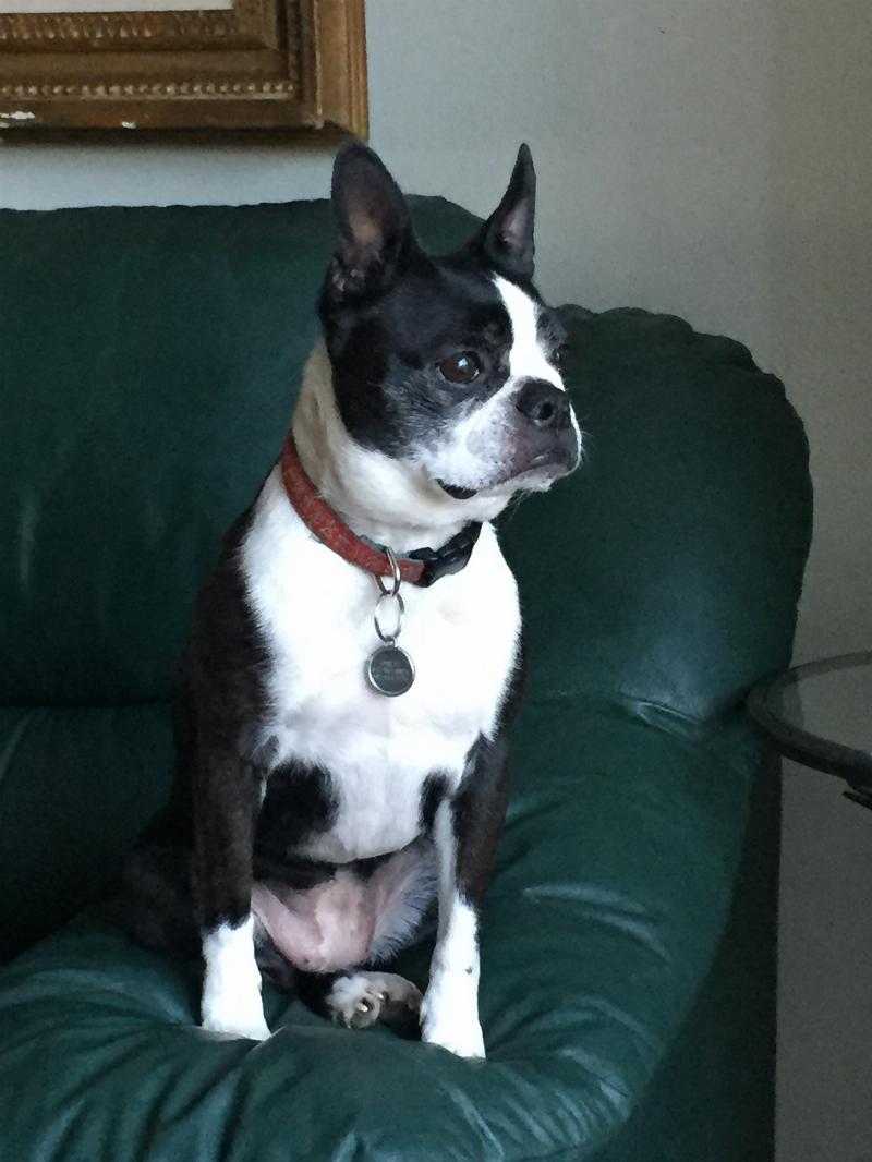 Oreo is a well behaved Boston Terrier. She is a helpful service dog. She travels well and does not bark unless she is warning us.
