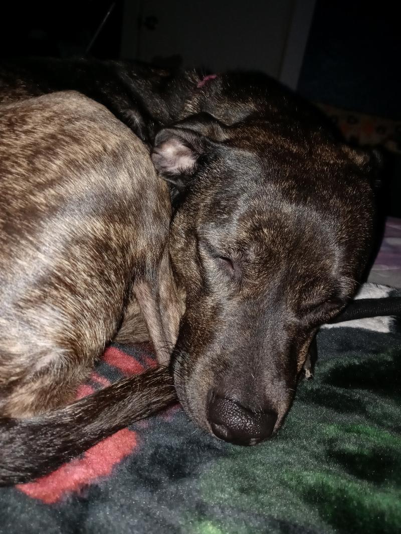 She just got home from working we went to walmart. She needs a nap. She is my sweetheart n saving grace. She is a whippet a greyhound.