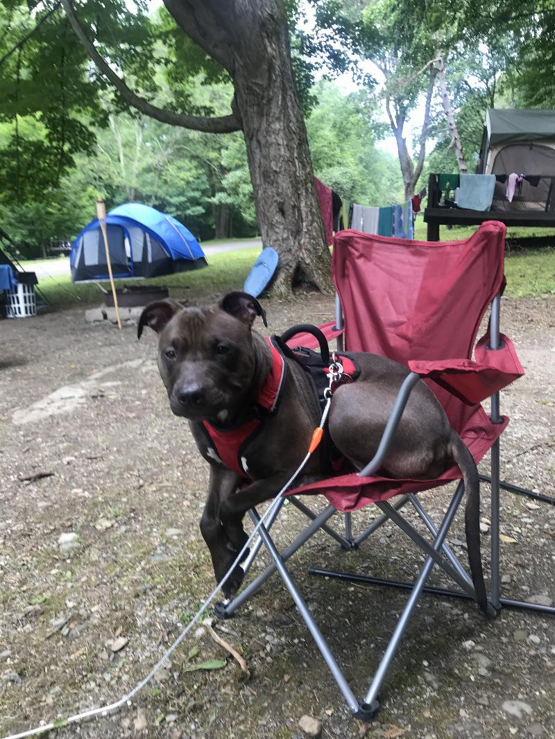 This is a picture of our beautiful girl Jadey camping with us. She was so good & enjoyed herself. Can’t wait till we go camping again