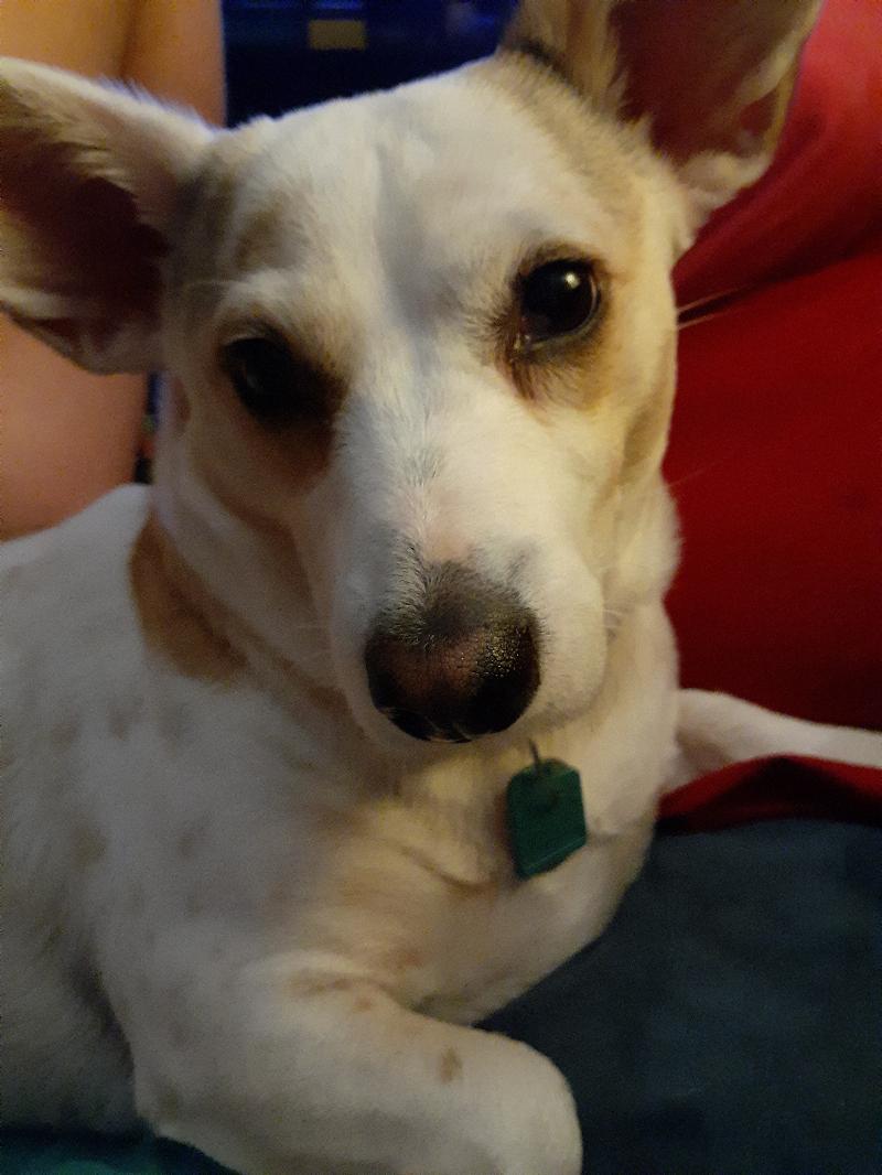 This is nymeria. She is a corgi mix. She answers to nymeria or meria. She is very friendly and a curious dog.