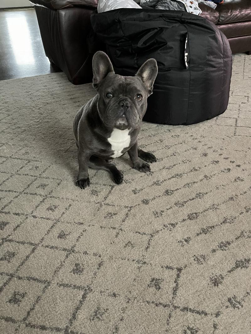 This is my dog Dozer. He’s a french bulldog. He’s gray with a little brindle. Has a boxer brother and two human brothers. Loves his family.