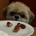 Evening snack at Denny’s and we caught him just as he sat up, he didn’t even notice the sausages yet.