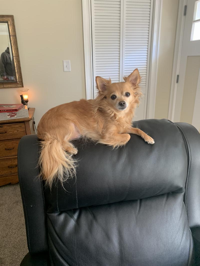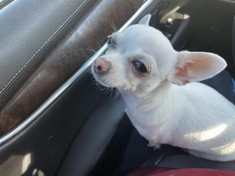 Alfa male 7 years old. long haired chihuahua very sweet. May run from you at first. if you say, “ do you want to see?” he will run to you to pick him up so he can look around ?♥️?