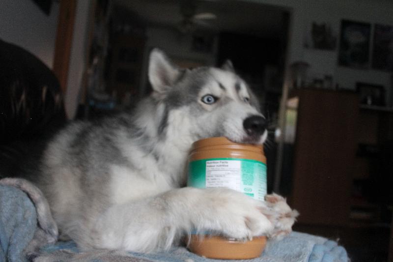 jasper stole the peanut butter and he wouldn’t give it back. he eat half of the jar….. this is not the first time he’s done that