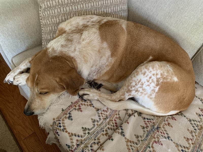 Lucy at rest in her spot and I’m the only one besides her that can sit there.