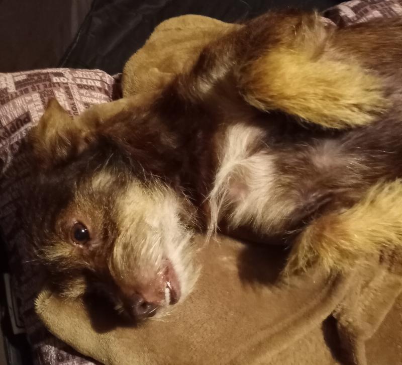 This is little Lemon. A rescue from after the Paradise Camp Fire in 2019. When I adopted her she had a fractured left hind leg. She is great now and a fun girl. I love her very much!!!