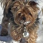 Casper having fun in the snow and guarding me from the Wildlife around his home. He loves to run, being outside with me, truck rides are great with him and is very protective of me.