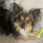 Pomeranian chihuahua mix, 2 years old. He is spunky, and loves his dentabones and his Grama. He also loves playing with his sister cat sky.