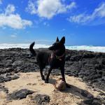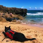 Service Dog River Roux at Sandy Beach, Honolulu, Hawaii.