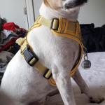 This took a little bit of getting used to but I think that I gave him a sense of pride. Jack is a very good boy he gets rashes under his arms so we got the special vest to stay away from that area for him.