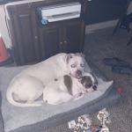 It’s ivory and my other dog she’s protecting him and cuddling with him. She loves to lay with him and play with him. She’s always protecting him.