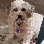 Hi, my name is Cutie Pie. I am 10 years old and I love to play fetch and snuggle in your lap while you pet me.
