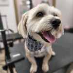 Freshly groomed Ace. Smiling for the camera. He hates being dropped off at the groomer but loves feeling fresh and clean.