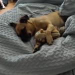 She enjoys dreaming about chasing squirrels and sleeps with a squirrel toy.