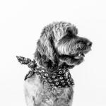 Keena portrait- hairy cocker poodle mix brindle colored- expressive eyes- super friendly- army crawler- cuddle doggy