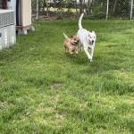 Duncan was running around and playing with a neighbors dog that I was looking after while they were on vacation. He is such a sweet dog.
