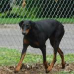 Letty 4 yr old Euro/Amer. Doberman. Rust and black. She has tiny thumb prints on both front paws. She is a gentle giant. She stands 34inches at shoulder.