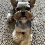 Kayla is a 10 lb. black poochon (poodle/bison mix). She is extremely friendly and playful. She also has been trained well and if you call out “Kayla stop” or “kayla sit”, she will comply 90% of the time.