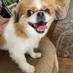 Laila is sitting very happily she is red & white haired japanese chin 11 pounds she is 8 years old and loves hiking, kayaking, and bellyrubs