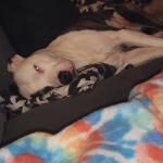 Chevy relaxing for a nap. Which is her favorite passtime…. She also loves to play with tennis balls and to be rubbed on her belly.