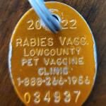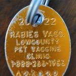 3 Year Rabies Tag – Vaccination received Mar 2022; expires March 2025. Wanted to lighten the amount of tags that Tucker has to wear on his collar – consolidated with digital profile.