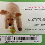Photo showing the microchip number and the breeder name. Microchip number: 952000001268999 Breeder: Goldenpride Kennel