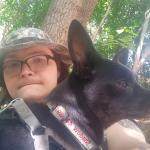 A photo of a picture of Shadow and me together. He goes wherever I go. You will always find him with me. He is the best dog and is highly intelligent.