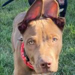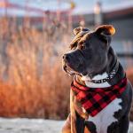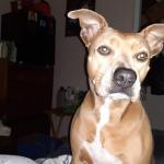 This is a photo of Tackle outside. He is a very sweet and calm dog. He helps with my anxiety tremendously. He rarely barks.