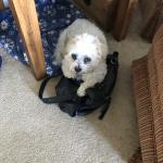 Very playful and cuddling puppy. Loves chewing on blankets or tags. Loves to ride on shoulders while riding in vehicles.
