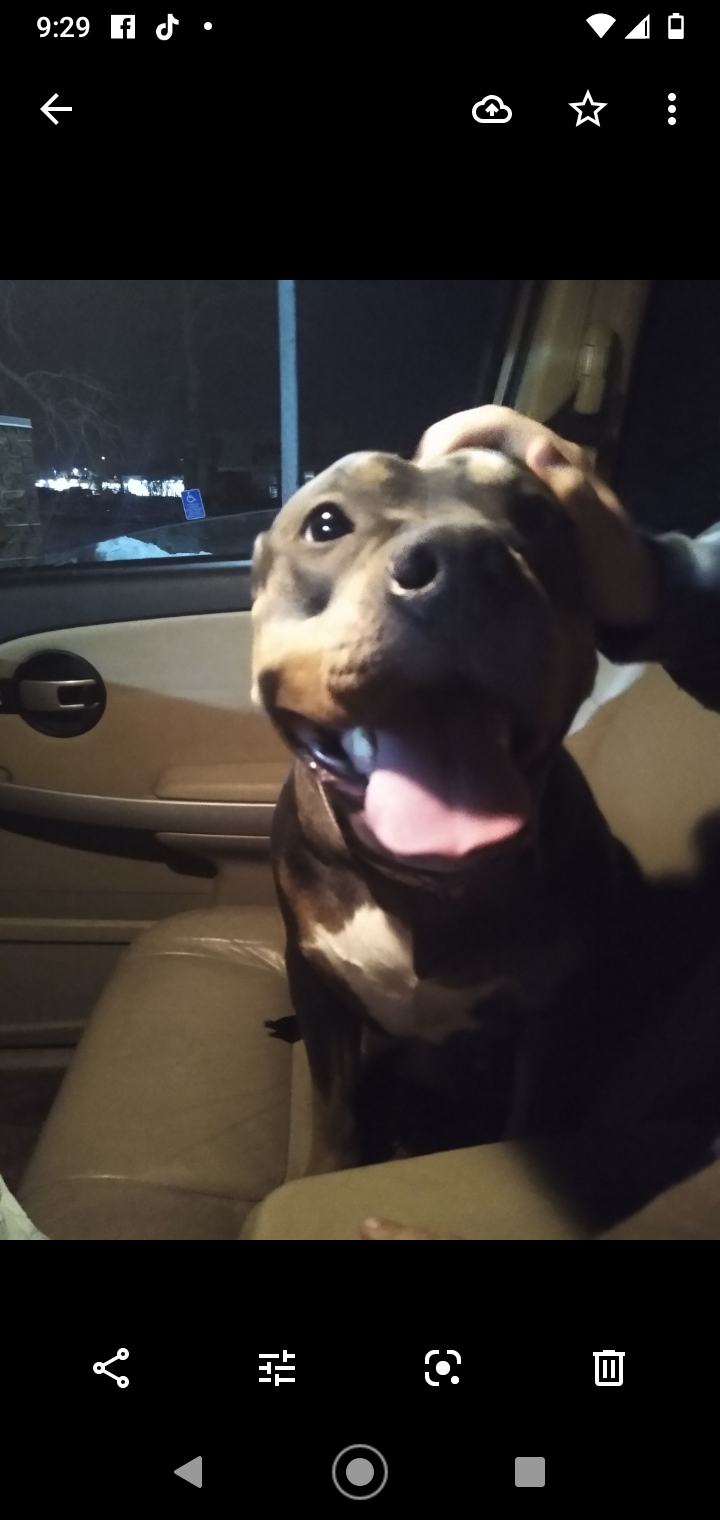She’s a very good dog she saved my life a couple of times already wakes me up when I have asthma helps me when I fall