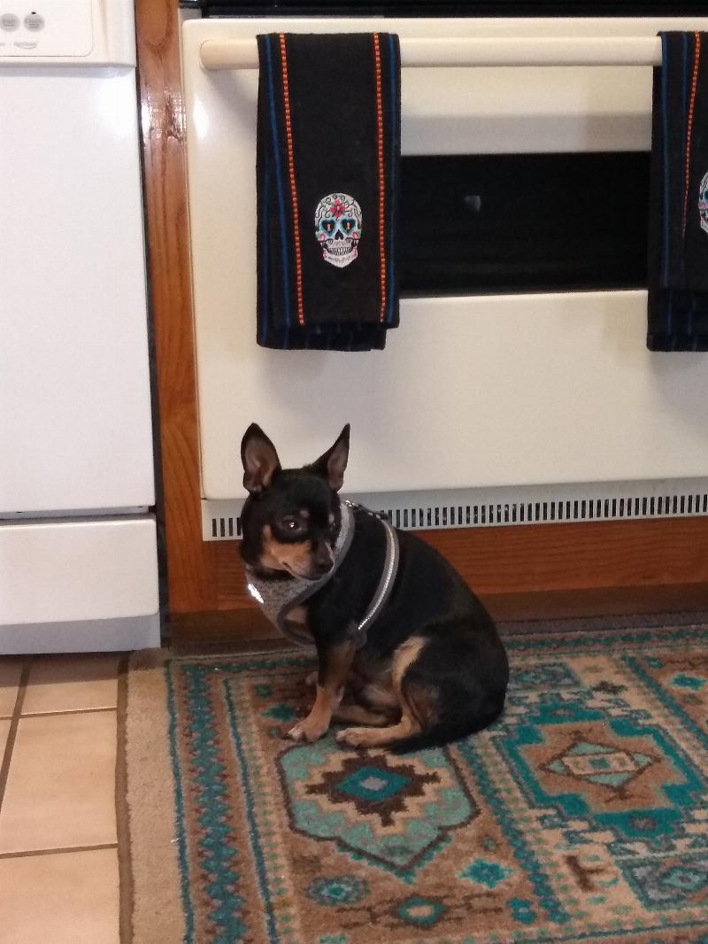 My baby is upset about his visitor. A male Min Pin about his age and hes not sure about why he has to entertain him.