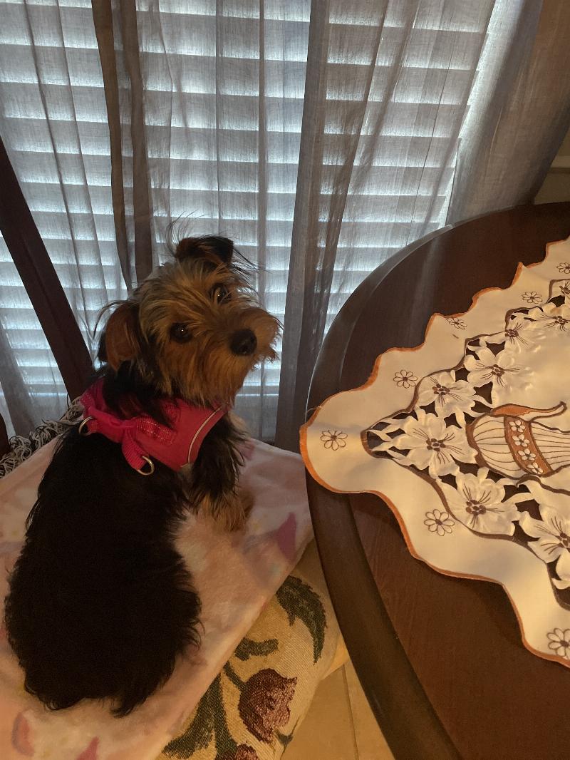 thinks everyone should pet her   Loves all animals such as chickens, Squirrels, cats and especially other dogs.    Very curious nature