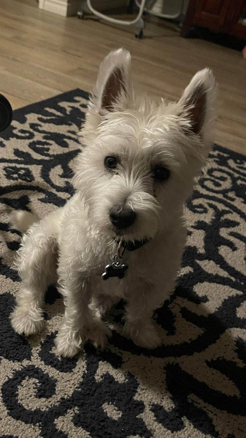 Clemson is a calm, loving, playful, smart White West Highland Terrier Purebred that loves his furry friends almost as much as his human friends. We love him so much.