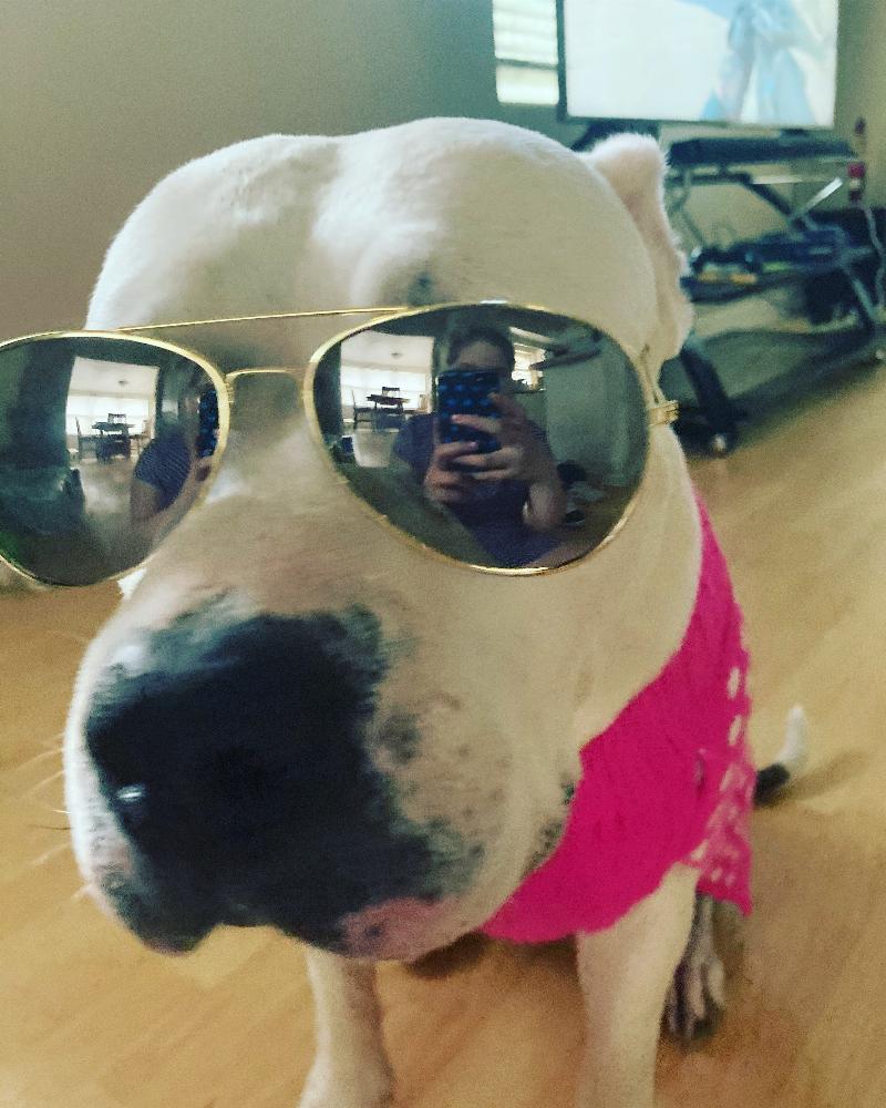 Cookie taking a moment to relax and show how cool she is