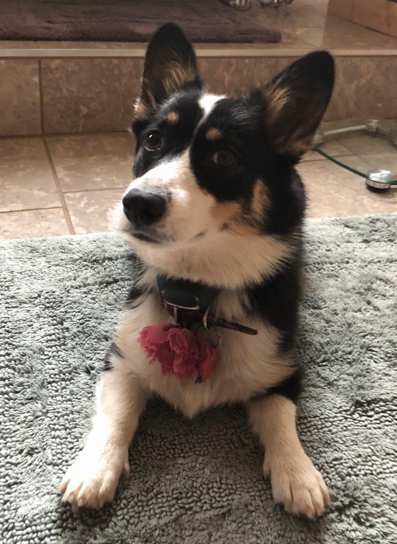 This is Corbi at about one year old. She is always on alert and ready to assist me. She watches for signs of mobility issues which could lead to falls.