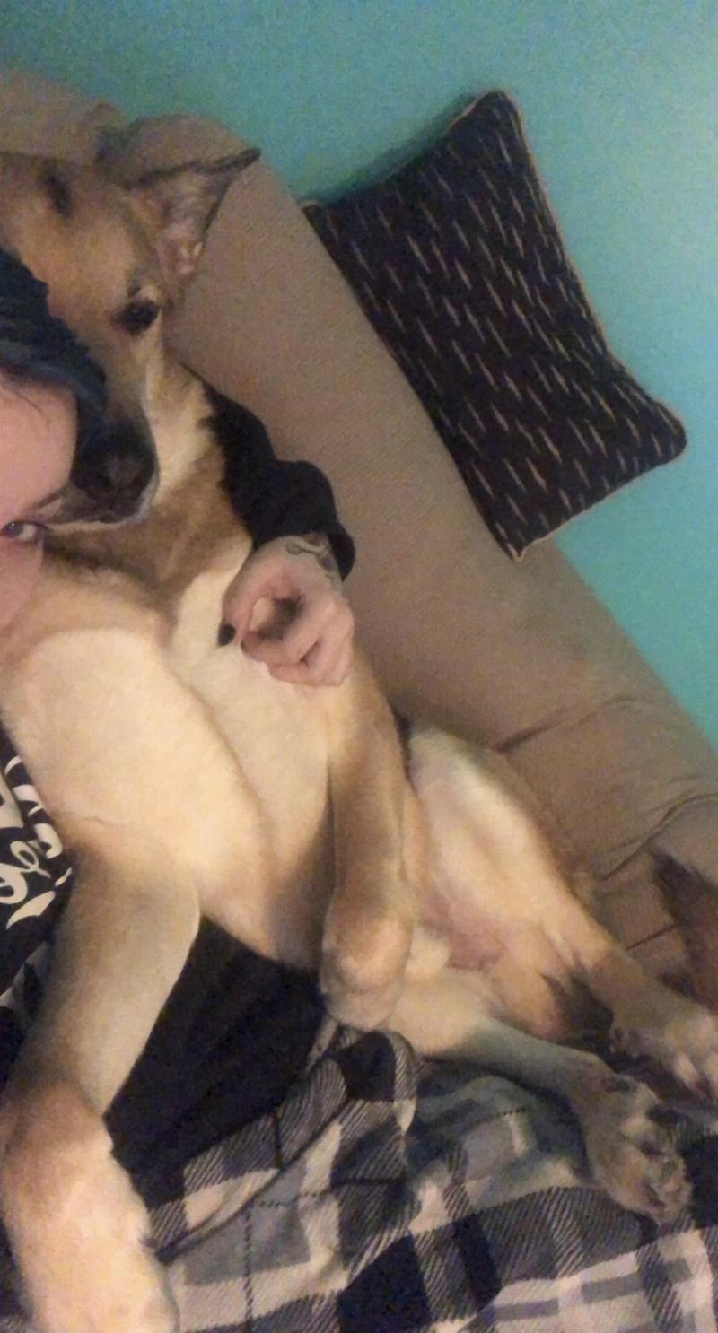 He is the biggest mommas boy! He loves to be near me all the time. Cuddling is his favourite even if that means I end up with 40kgs of dog on top of me. 🙂