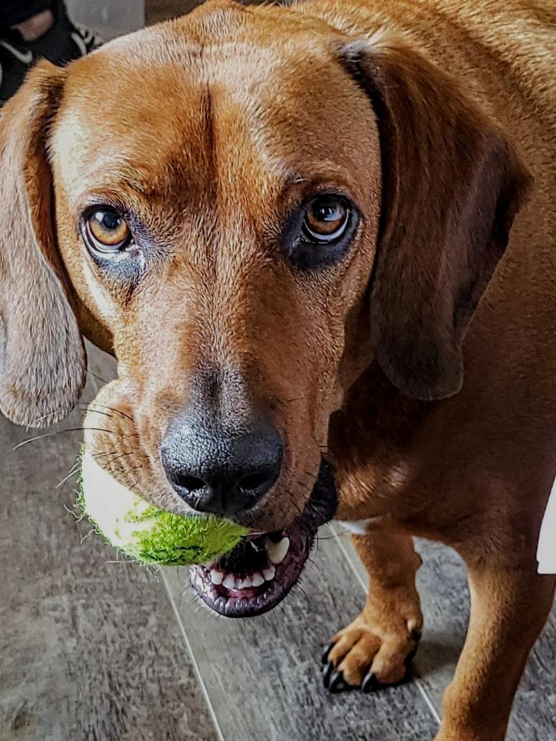 Rusty loves to play ball when he’s not in training mode. He never leaves my side and I don’t know what I would do without him